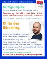 Die Wirtschaftsförderung Saarpfalz (WFG) berät im Saarpfalz-Kreis:– Unternehmen, insbesondere Kleine und Mittlere Unternehmen (KMU), Handwerksbetriebe, Einzelunternehmen– Personen, die eine Existenzgründung planen oder ein Unternehmen übernehmen möchten Die WFG informiert über:– Zuschüsse, Investitionsförderungen, Förderdarlehen für Vorhaben im Saarland– Kooperationsmöglichkeiten mit Start-ups,… weiterWFG Wirtschaftsförderungsgesellschaft Saarpfalz mbH – Partner für Unternehmen und Gründende im Saarpfalz-Kreis