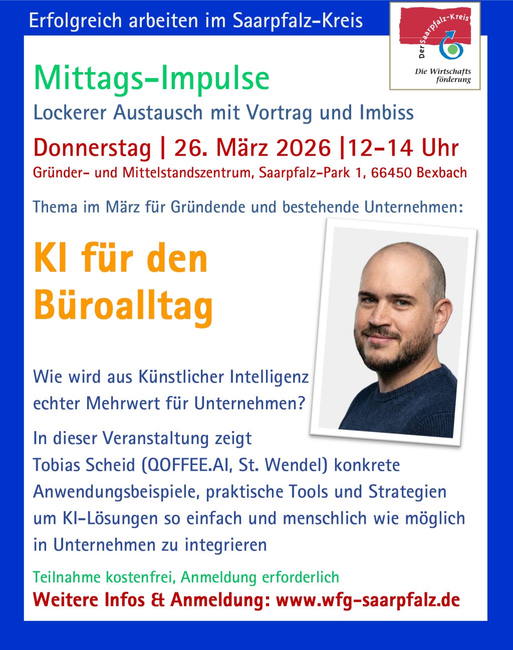 Veranstaltungsort: Gründer- und Mittelstandszentrum, EG, Saarpfalz-Park 1, 66450 Bexbach
