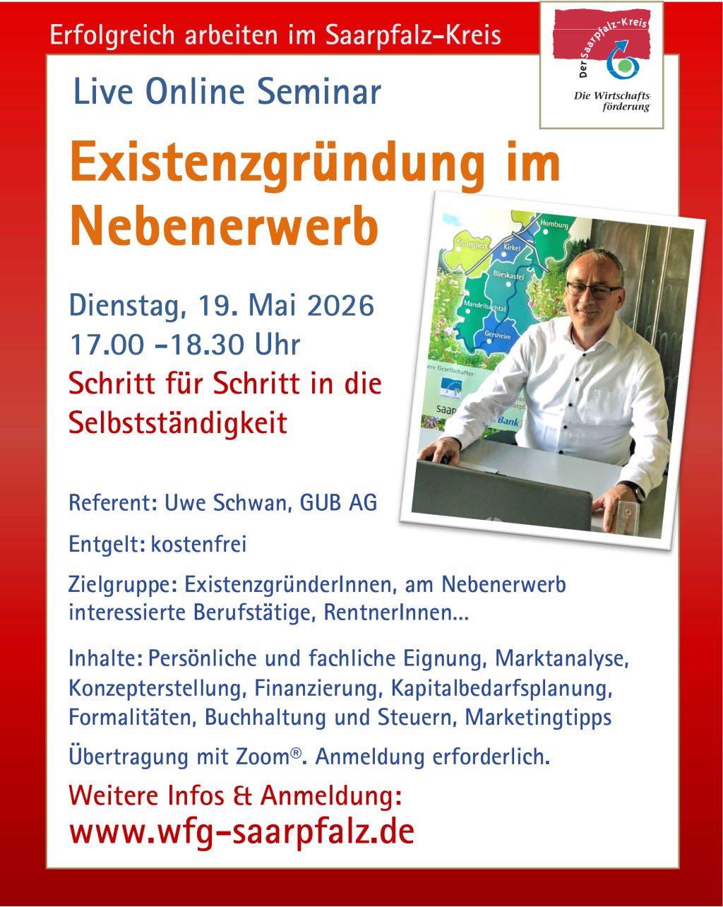 In diesem Live Online Seminar erfahren Sie bequem von zu Hause aus mehr über die Rahmenbedingungen sowie die Chancen und Risiken dieser Form der