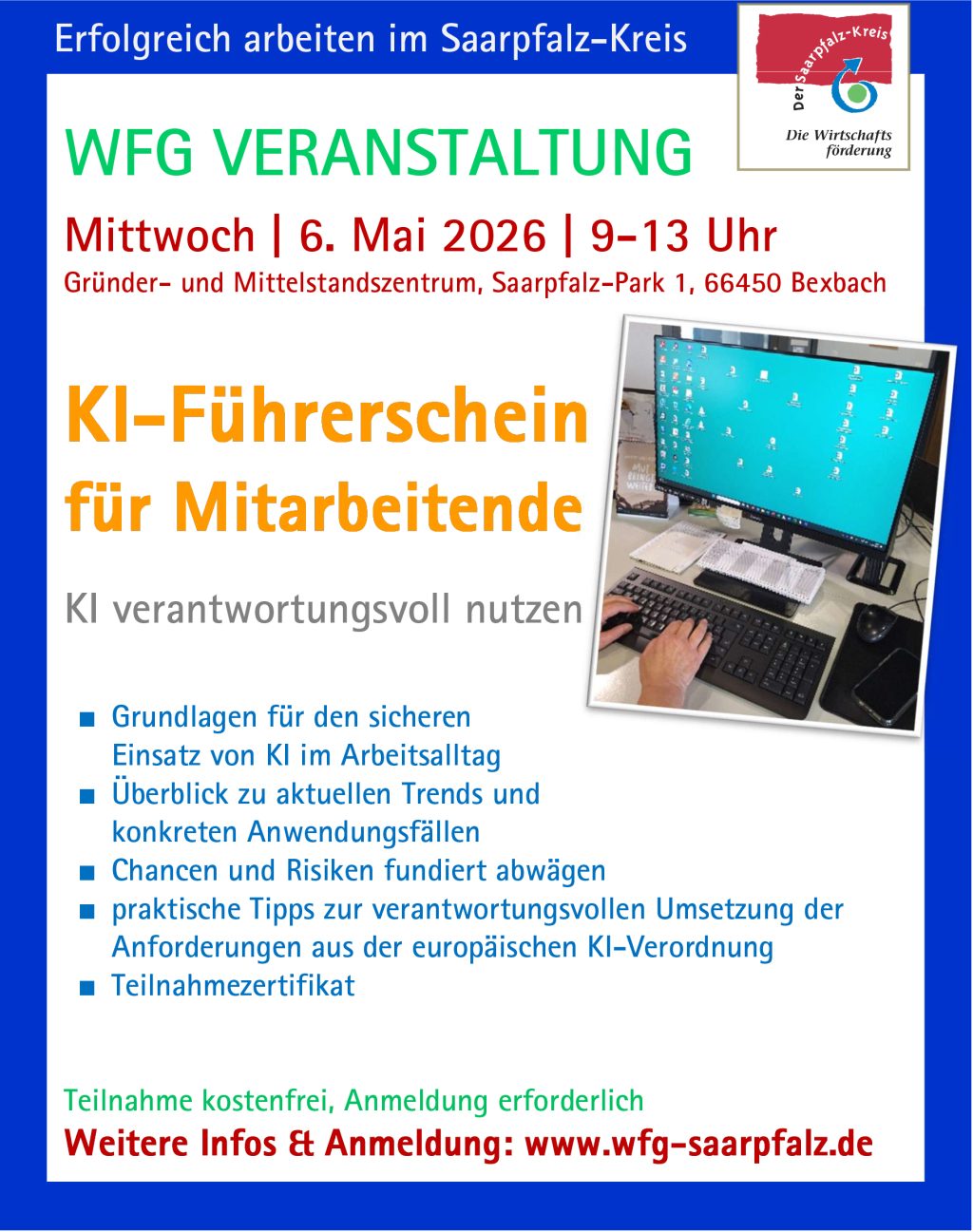 Die Teilnahme ist kostenlos. Anmeldung erforderlich, bitte hier anmelden: https://eveeno.com/KIFuehrerschein
